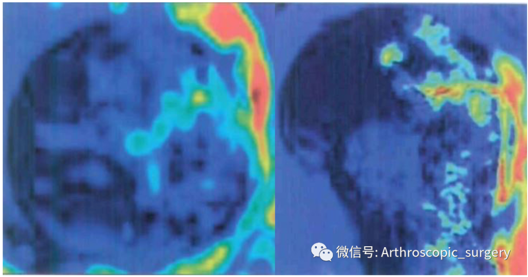 我们认为:这一切可能是因为在肩关节镜手术时,控制性降压和灌注压力的增加导致肩关节内局部压力差增大,从而出现局部血供的减少;同时,由于术中相关操作时误伤部分相关血管,以及术中过度使用射频导致局部温度增高、老年女性(绝经后)等众多基础情况叠加下发生类似于股骨颈骨折后关节内压力增加,影响到附近未损伤的动脉,加重血运中断的类似情况,进一步加重缺血程度,同时还导致静脉回流受阻,这一系列结果导致骨髓腔内压增高,最终出现缺血坏死的情况。