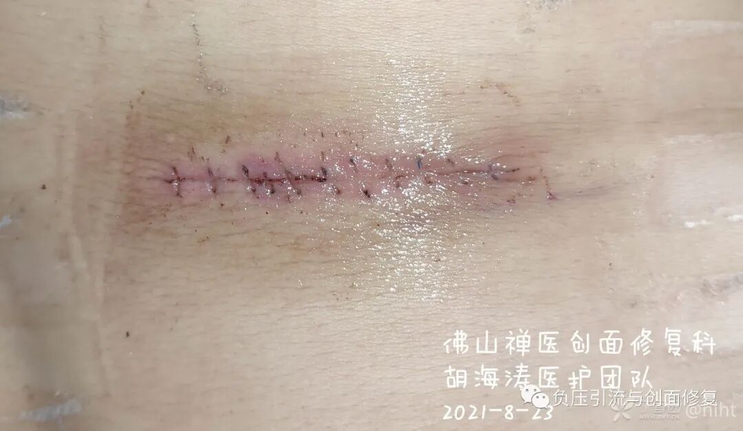 治疗方法:1.保守治疗:皮损内注射皮质类固醇、皮损内注射氟尿嘧啶、压迫治疗、硅胶片、冷冻、激光治疗等;2.手术切除与围手术期治疗:手术切除瘢痕疙瘩和增生性瘢痕,围手术期辅助联合治疗效果更好。手术后24小时内给予低剂量放疗,疗效确切,是目前治疗疤痕复发率较低的方案,今天分享一个案例,手术后切口瘢痕疤痕治疗经过: