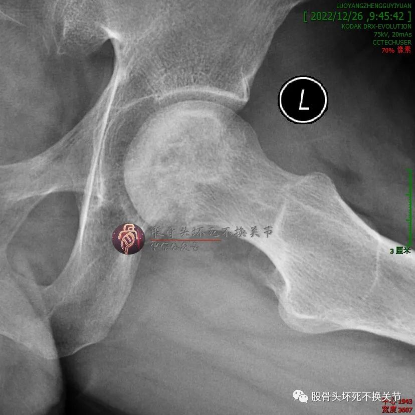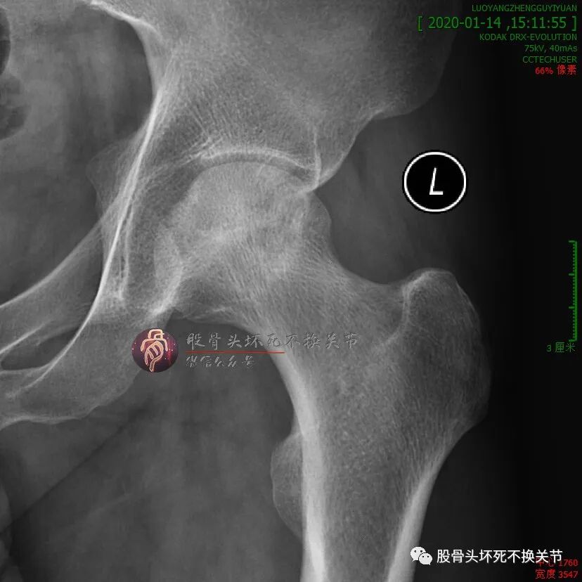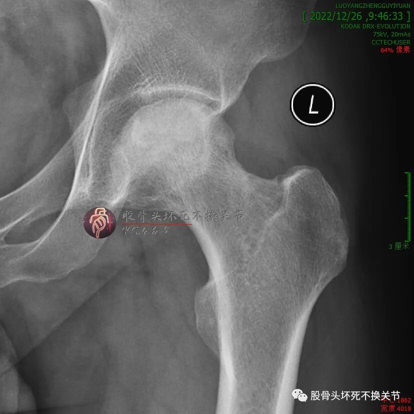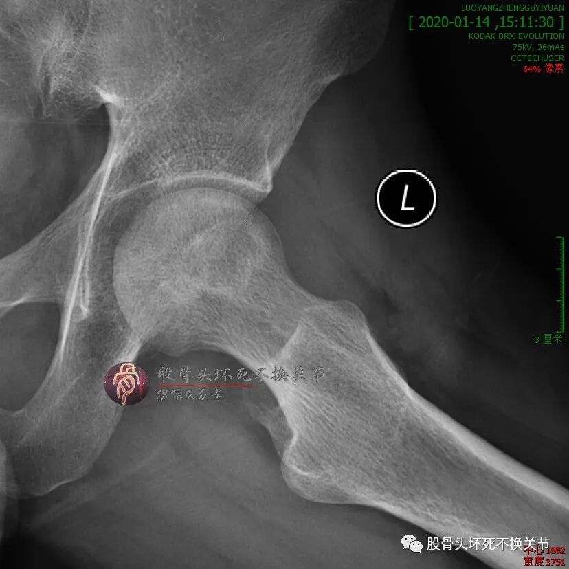 男性,34岁,2019年11月确诊左侧股骨头坏死,2020年1月前来住院行冲击波综合保髋治疗,详情如下: