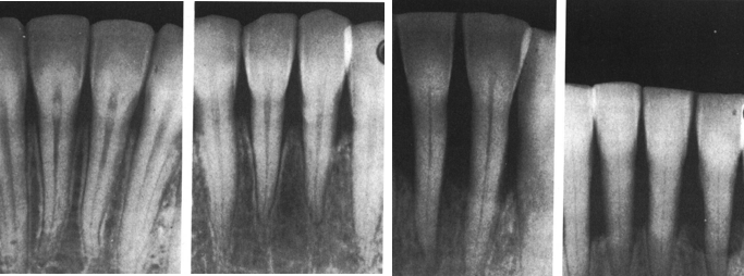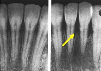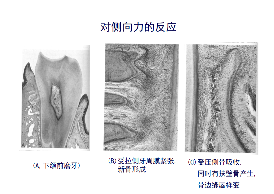 2、创伤在受压迫侧的牙槽骨发生吸收;在受牵引侧则发生骨质新生。一般认为合创伤引起的常为牙槽骨垂直吸收,形成骨下袋;而炎症则多引起水平吸收。 垂直性骨吸收也可发生于无创伤却有菌斑及慢性牙周炎的牙齿。 垂直性和水平性骨吸收都可以由菌斑引起的炎症所致,只是垂直性骨吸收发生在两个邻牙的牙槽骨间隔较宽处。