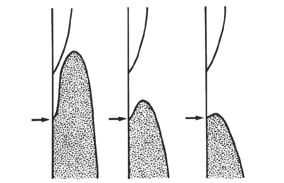 1、平型吸收最常见,牙槽嵴顶呈水平吸收--骨上袋