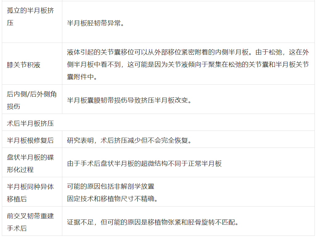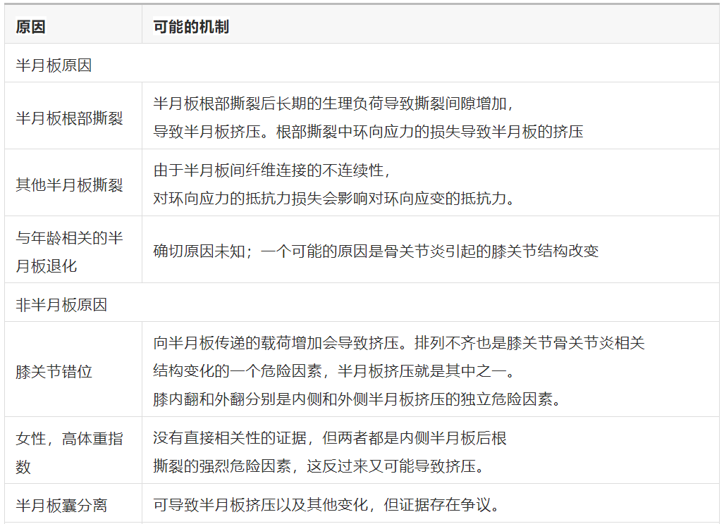 挤压可能有半月板和非半月板原因,其中后根撕裂被认为是最重要的