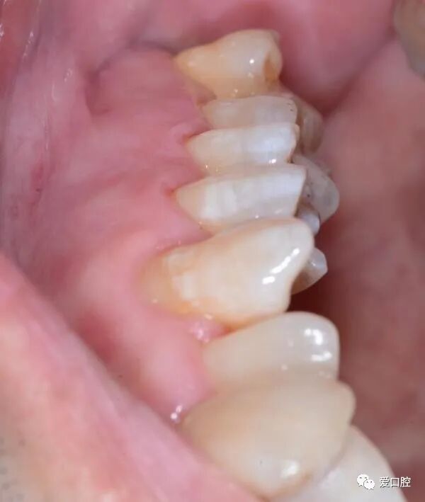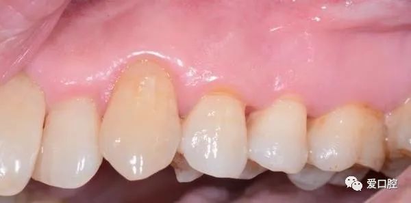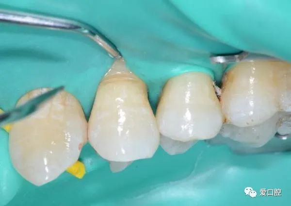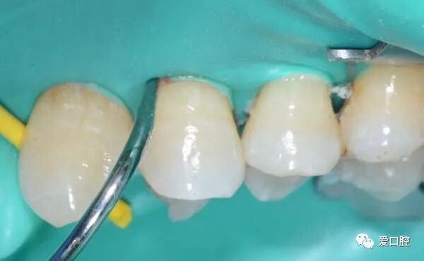 图3:用小挖匙压牙龈向龈方 可以看到缺损全部暴露