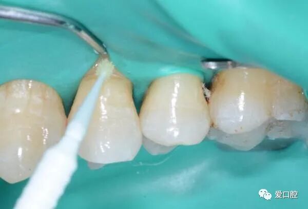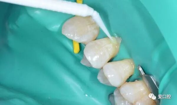 图4 图5 图6:在根面涂布自酸粘结剂 制作树脂突