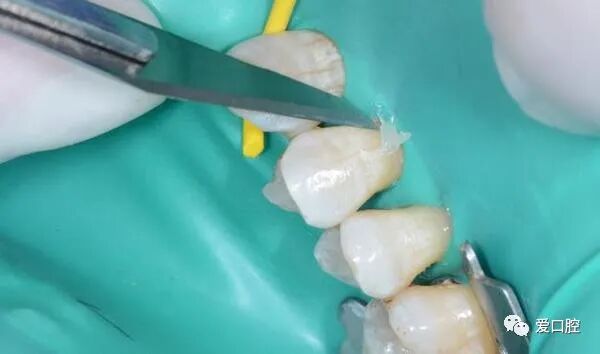 图12 图13 图14:手术刀休整树脂边缘 去除树脂突,并清理根面残留粘结剂