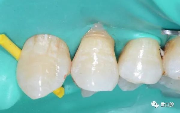 图7:树脂突可制作稍长一点 已可以固定橡皮障为宜