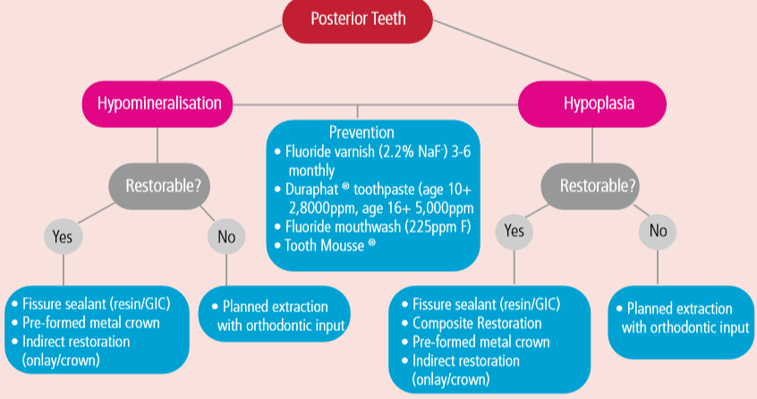 图7. 后牙治疗方案选择途径从组织发生,到病理分析;从病因到临床,再到治疗方案,为大家梳理了如何简单地区分牙釉质矿化不全以及牙釉质形成不全,以及如何处理这类患者,希望为大家带来一点新的思考。