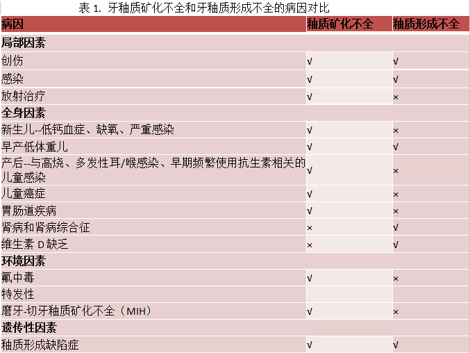 而牙釉质发育不全则主要表现为窝、沟状凹陷,牙釉质缺失或牙齿较小。有时可能很难区分两者。