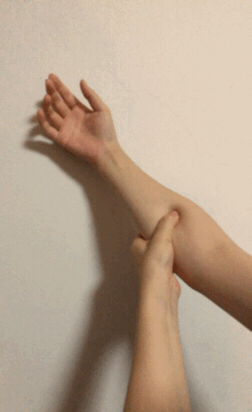 (1)右手腕背伸的时候,左手拇指和食指捏住右手手腕的手舟骨和月骨,往相反方向轻推,听见“喀哒”一声,说明关节复位了,这时会有一种手腕变得轻松的感觉。