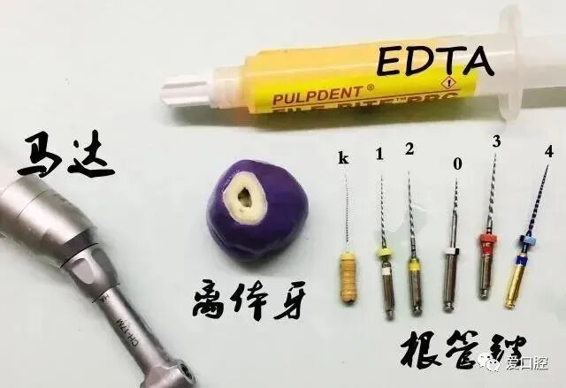 第二步:1号机用锉带EDTA预备。(不管这套锉型号怎么叫了,依次叫它01234吧) 预备好之后回初K疏通,此时我们发现,这个情况下冲洗和荡洗的器械是进不去的,怎么办呢,没办法跳2号,其实这些锉的设计能有效把碎屑带出来,并不会挤压出根尖。