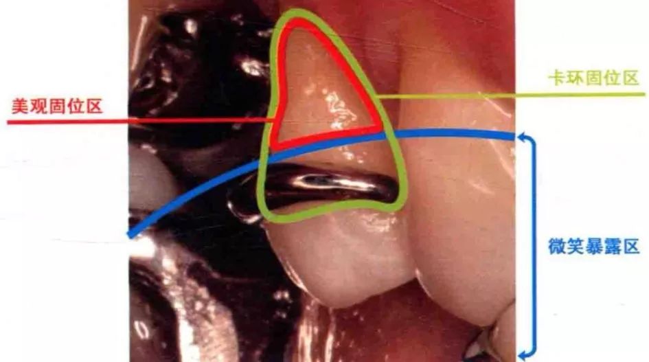 四、美观卡环的简单介绍(1)定义使用高弹性铸造合金合理利用基牙的美观固位区,在满足固位的前提下尽可能减少金属卡环暴露的一种改良设计。(2)美观固位区指基牙上不影响美观的倒凹固位区(图13)。