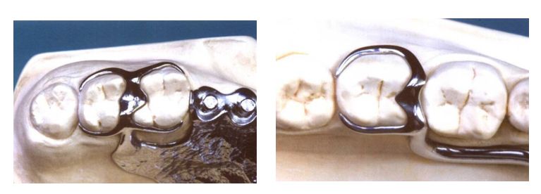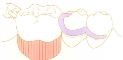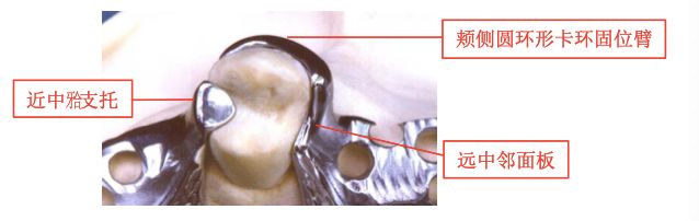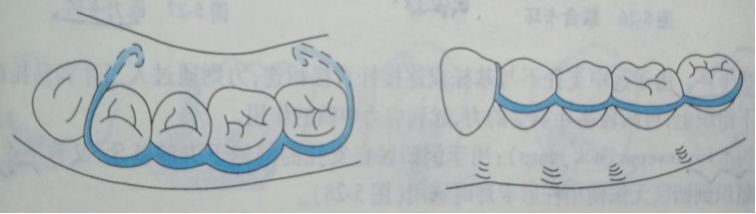 注意:有时,也可以使用牙色、牙龈色树脂等材料代替金属卡环,增加美观效果,但此种设计必须加强清洁,勿造成牙龈炎症和损伤。同时,注意树脂卡环的使用寿命也较金属卡环偏短。