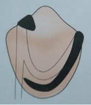 图9根据卡环固位末端的形状进行分类,还可以为T形、U形、Y形……(2)RPA卡环组(图10)适用条件:基牙过度颊或舌倾、组织倒凹过大或颊侧前庭沟过浅(图11),理想的倒凹位于基牙唇颊面近中龈1/3,不适合使用RPI卡环组时的非近中倾斜游离端基牙。设计要点:a.近中牙合支托+远中邻面板+颊侧圆环形卡环固位臂b.固位体应在咬合时与基牙脱离接触