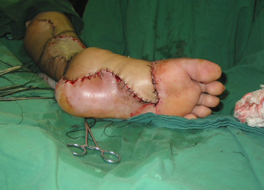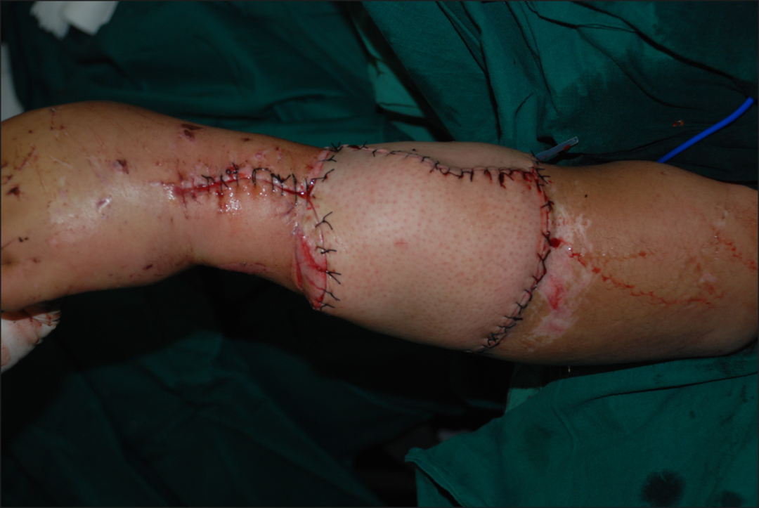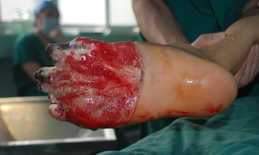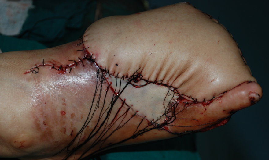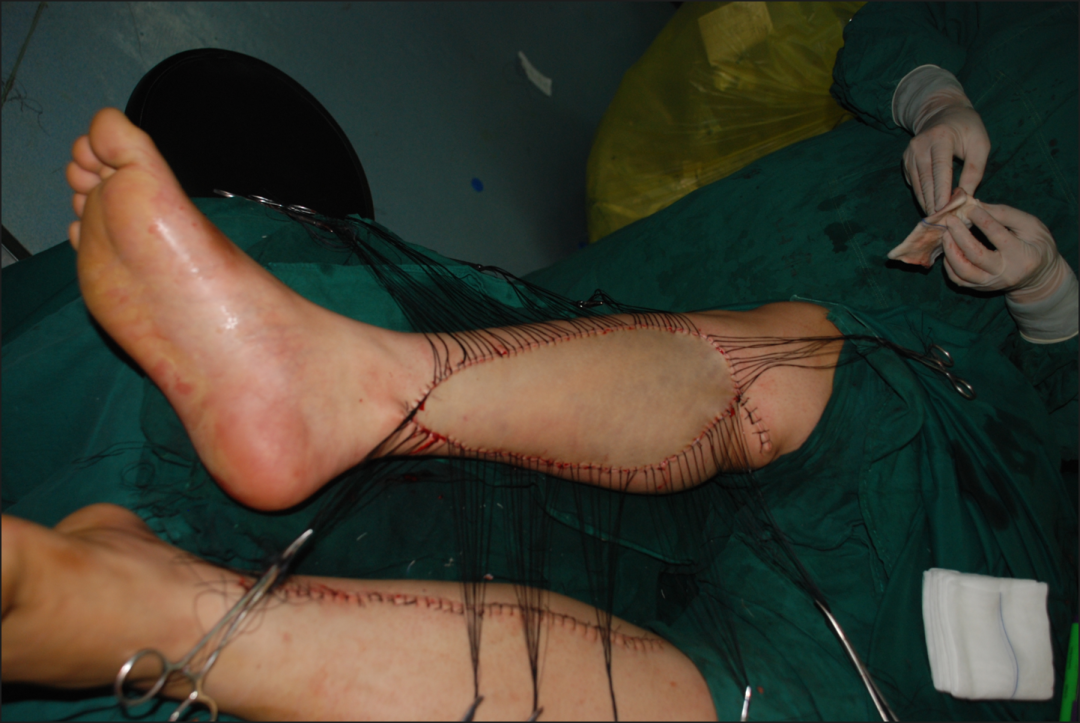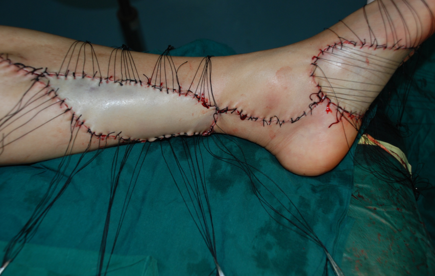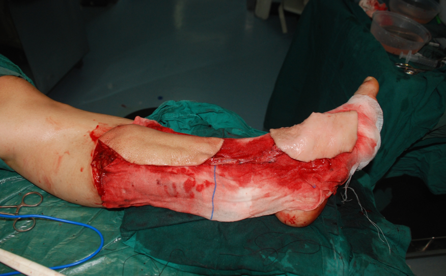 3、交腿皮瓣修复对侧创面(血管搭桥)