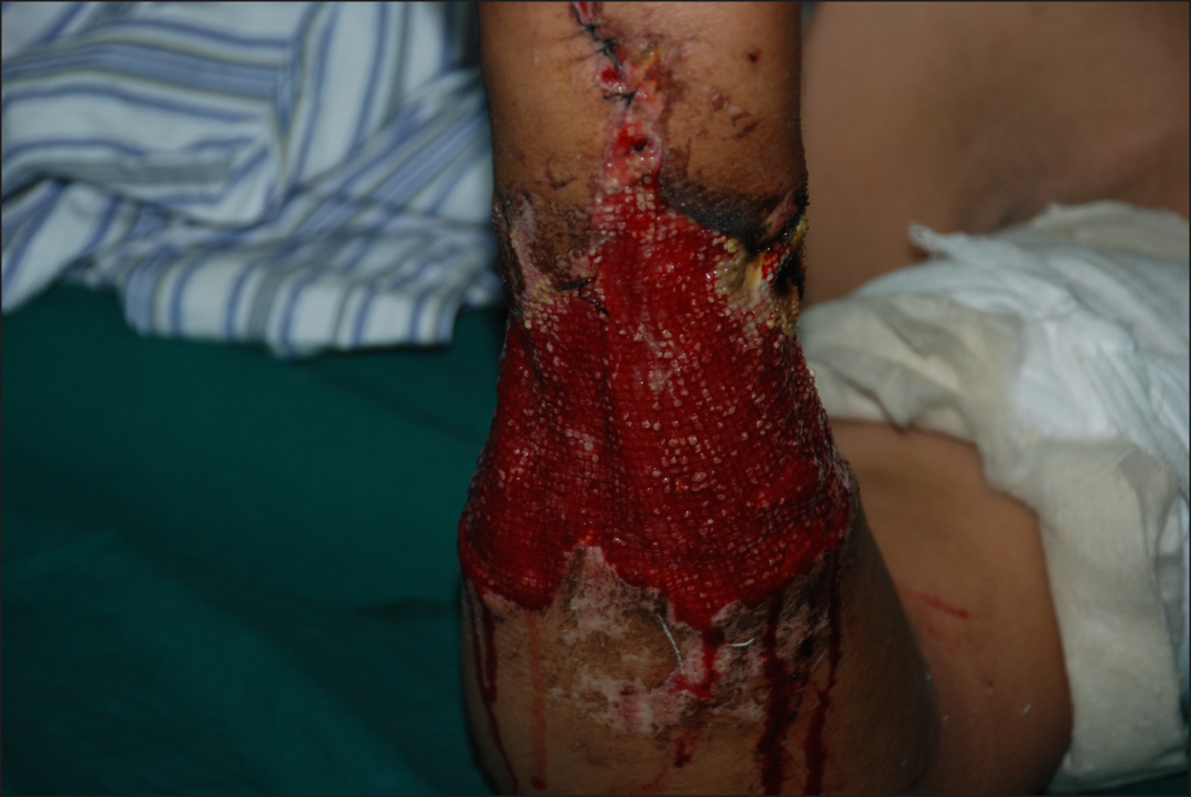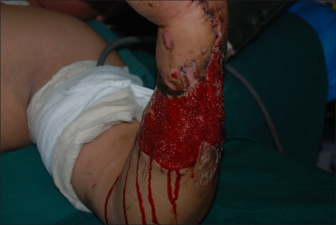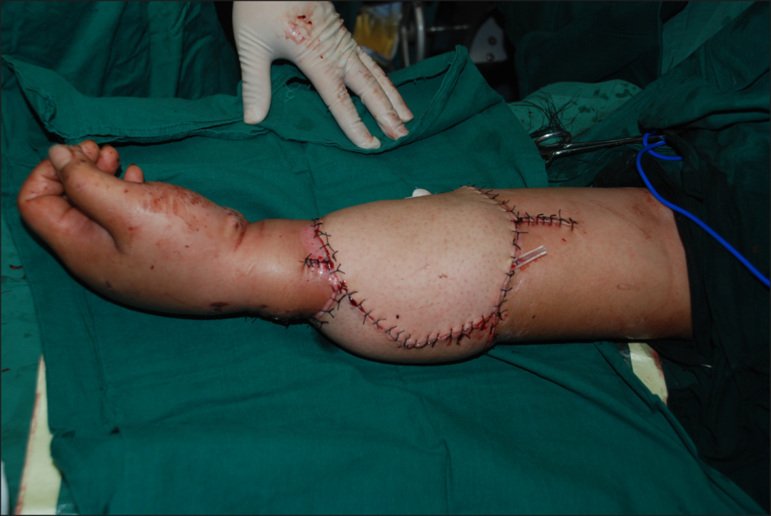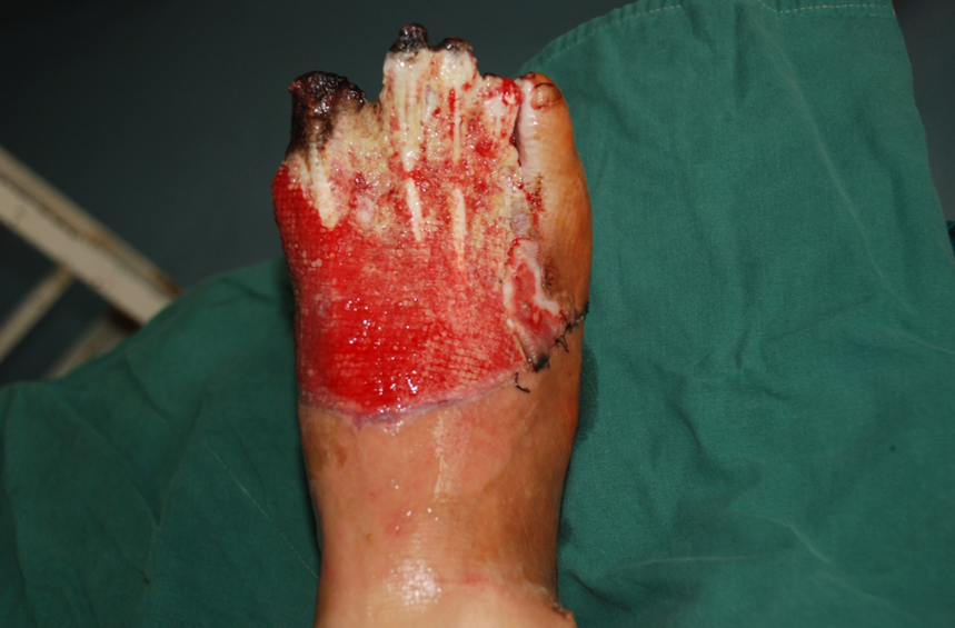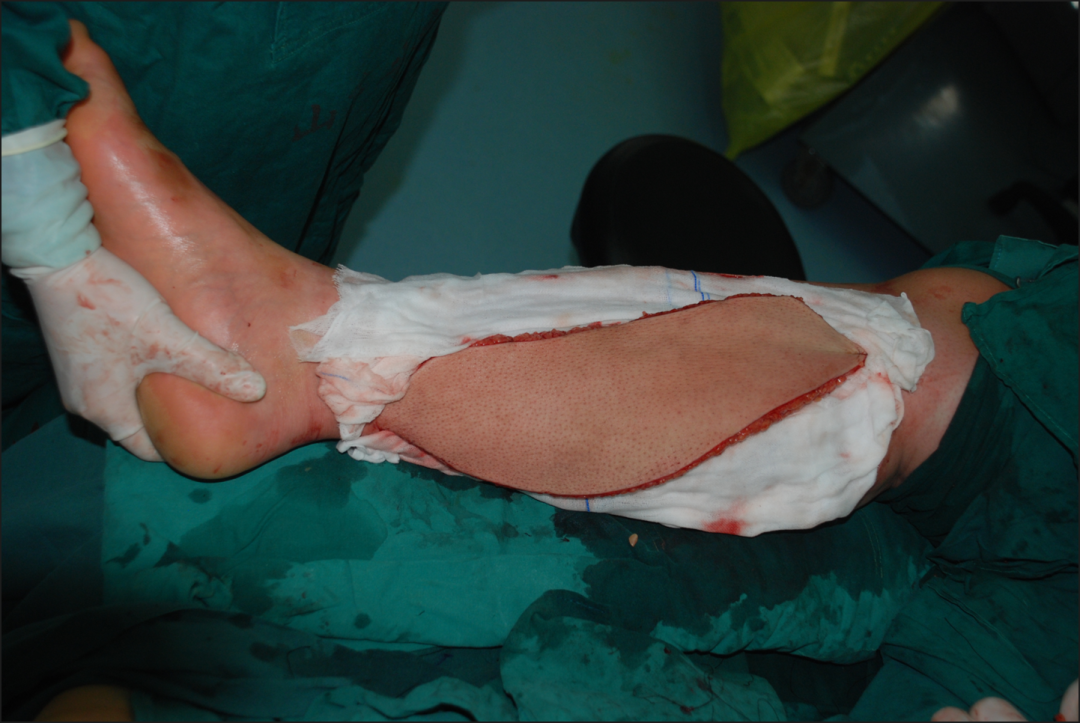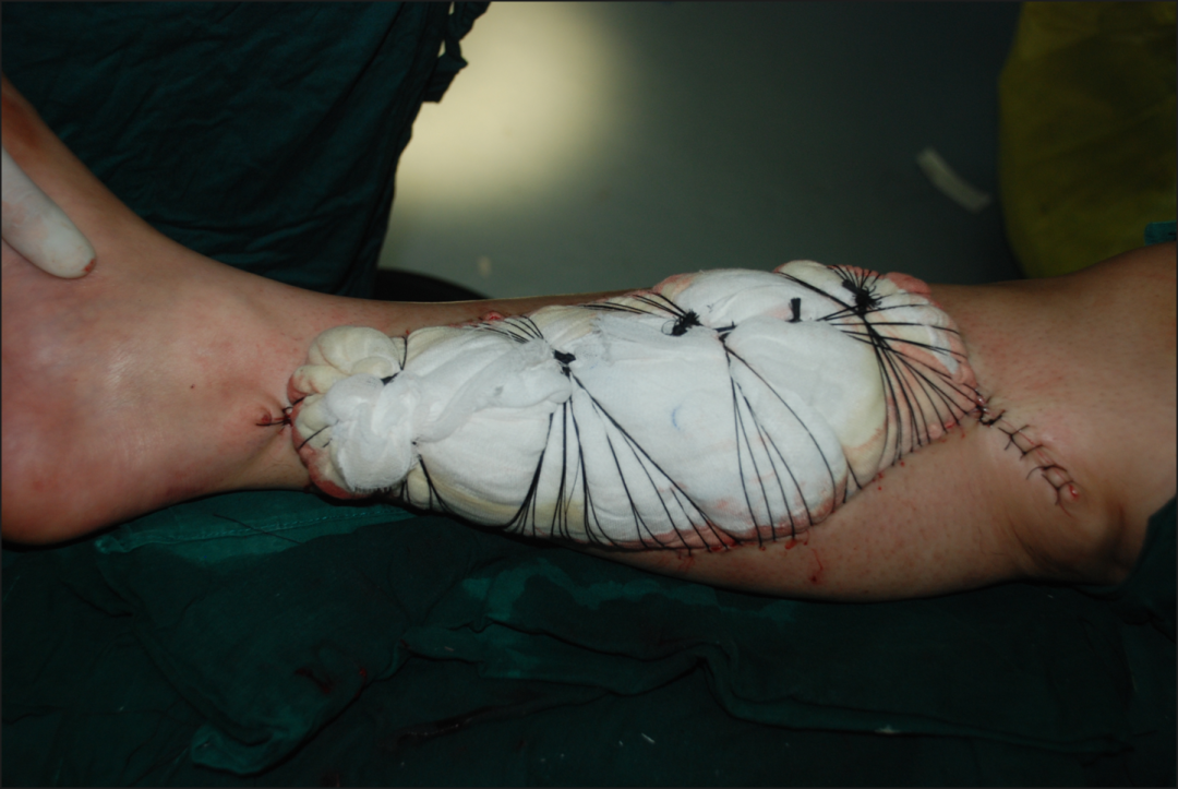 3、交腿皮瓣修复对侧创面(血管搭桥)