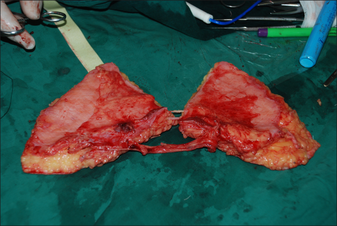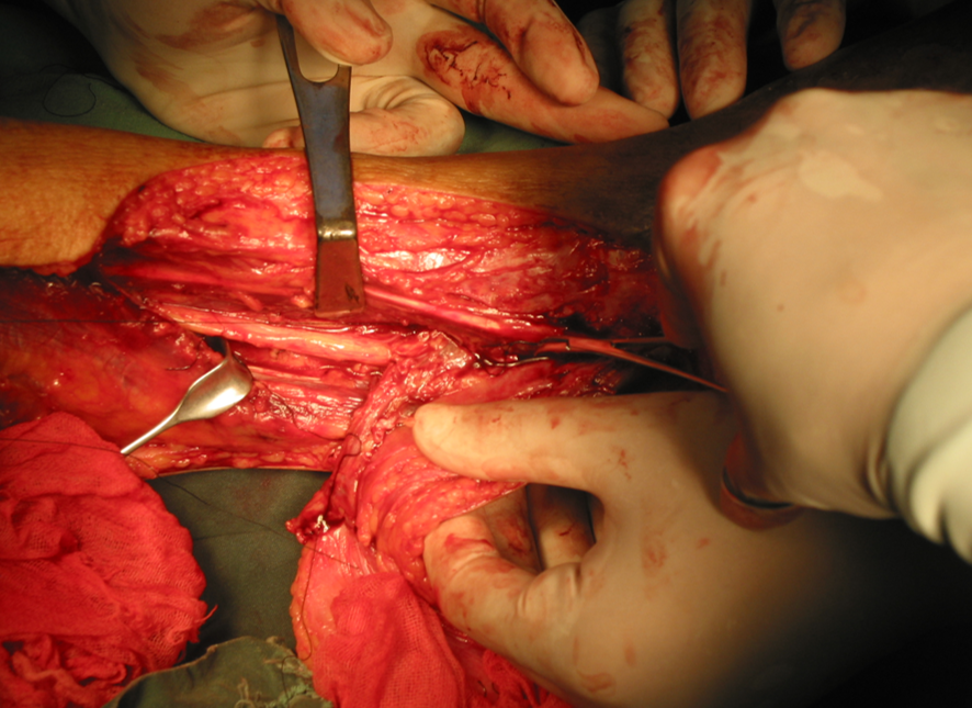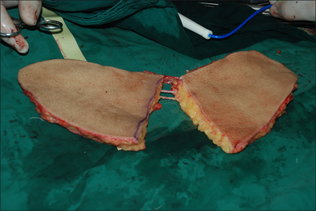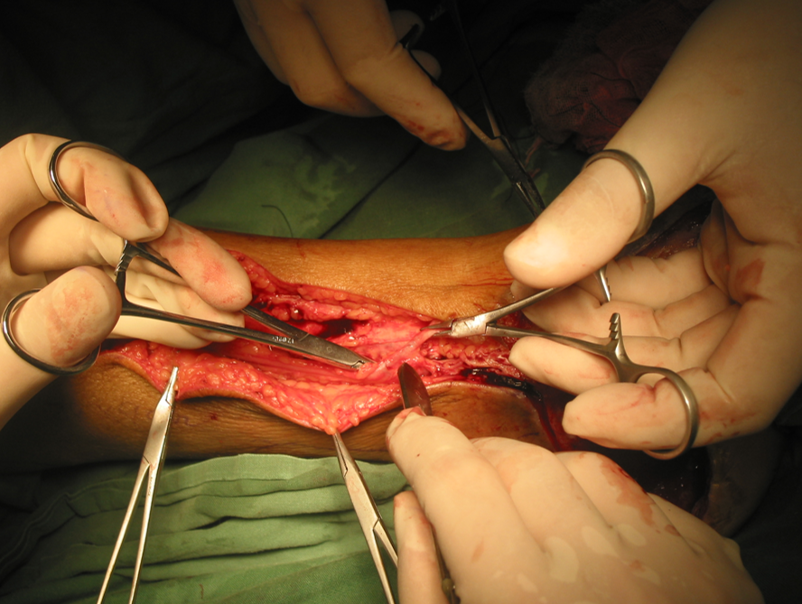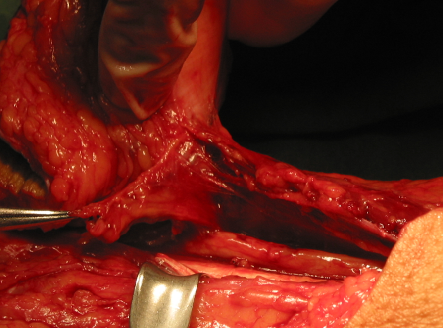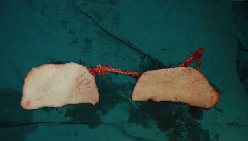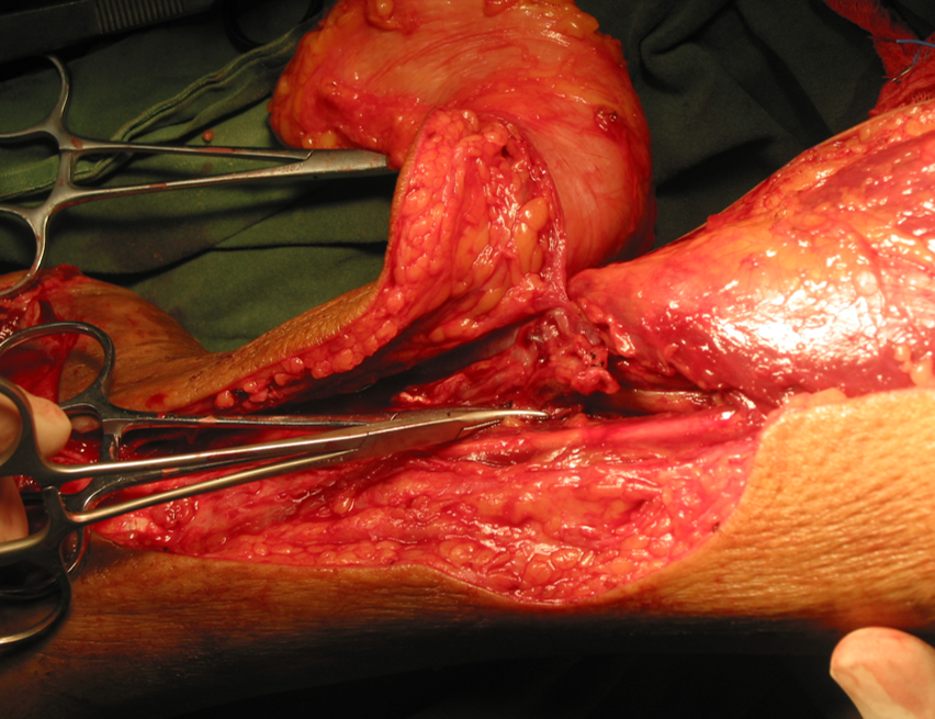 4、两侧汇合,分离皮支,必要时切断肌肉。