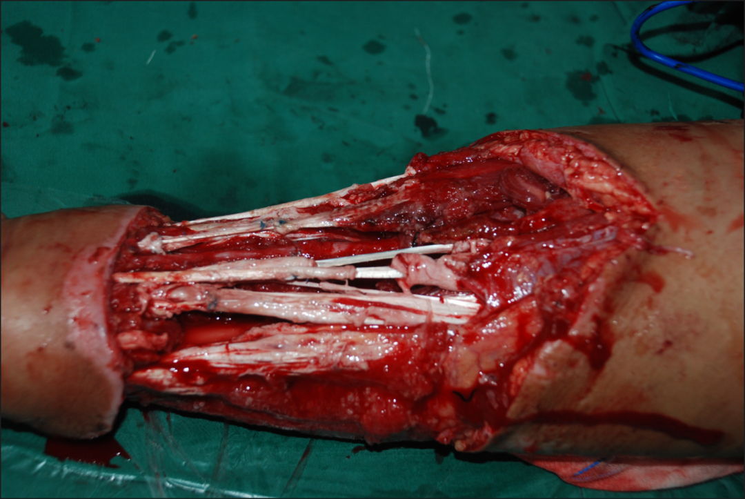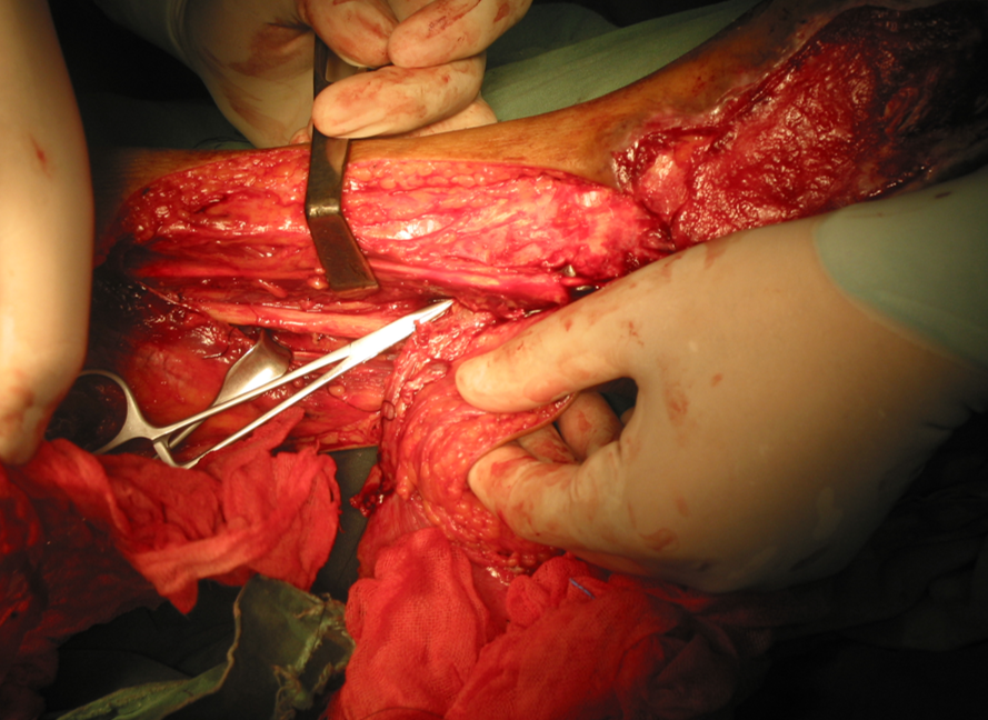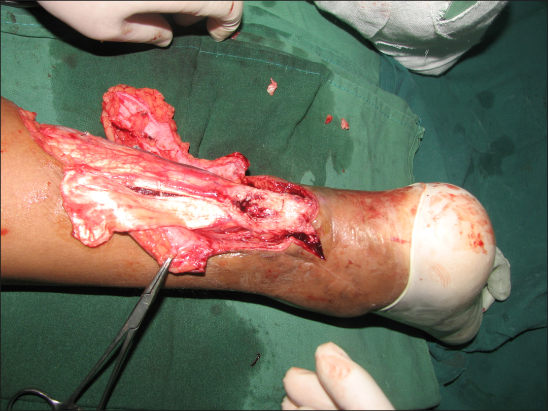 6、皮瓣带骨膜或胫骨修复骨缺损及骨不连。