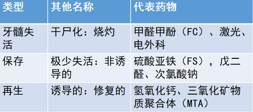 从定义上讲,再生就是复原或重新开始,即重生。因此,这一部分的牙髓切断用药应该可以保存剩余根髓活性并且隔绝充填和垫底材料的潜在毒性。代表药物有氢氧化钙和三氧化矿物质聚合体(MTA)。