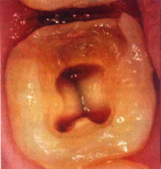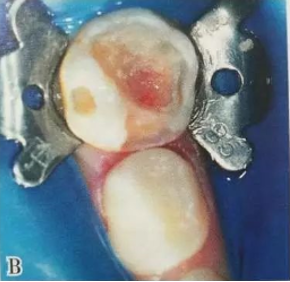 3.去净洞壁腐质和大部分洞底腐质,制备必要的洞型。