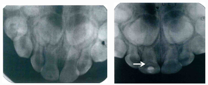 - 没有症状的龋齿,放射检查龋蚀接近但却没有与髓腔重叠,或者龋蚀与髓腔之间有清晰的屏障,无论患儿的年龄,建议行间接牙髓治疗。