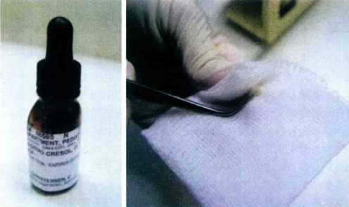 3.将黏稠的氧化锌丁香油糊剂或IRM放入髓室,最后修复牙齿。