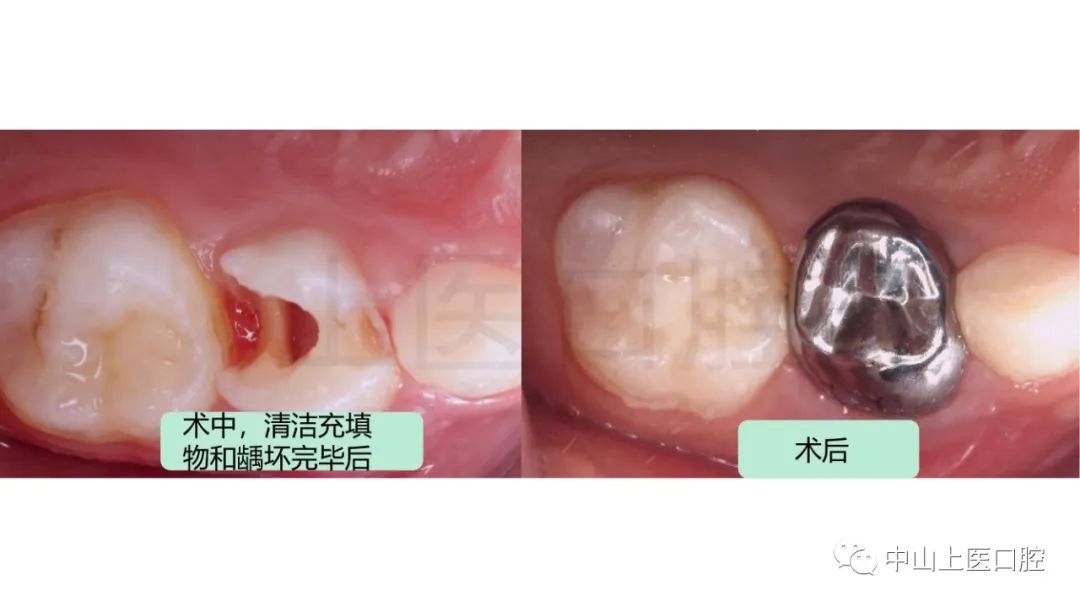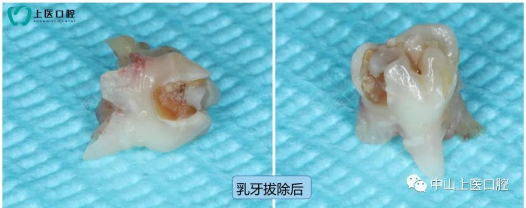 情况二:乳牙根尖炎症范围大,影响恒牙胚,根管治疗后难以控制。