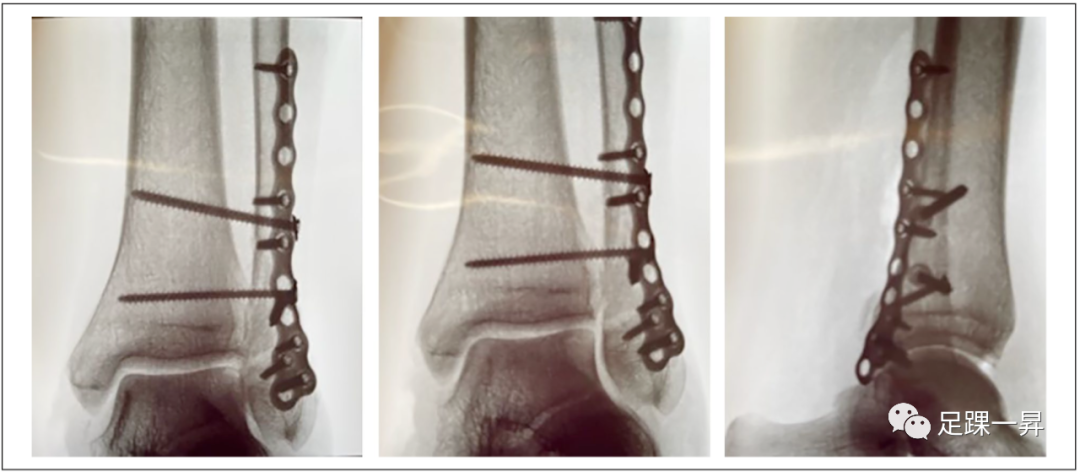 图3 最终的术中透视图像显示踝穴的复位和腓骨骨折的复位。如图所示,同时可以置入下胫腓联合螺钉。