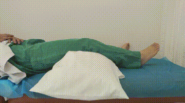 平卧位,在膝关节下方压毛巾或者枕头,抬起小腿,每次抬腿6秒,20个/组,每日6组。