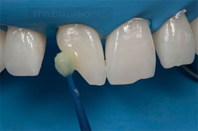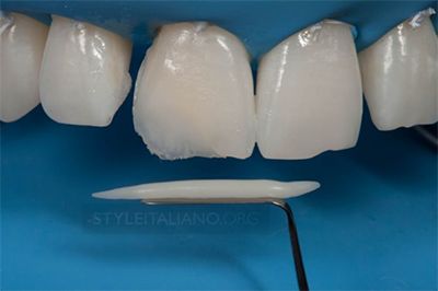 图20分层过程是按照复合配方进行的,并注意牙釉质的厚度。