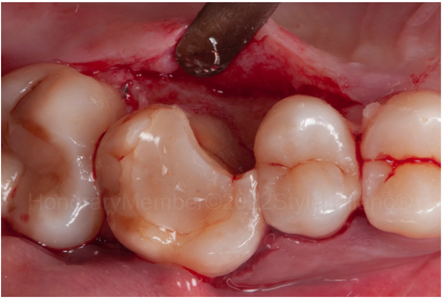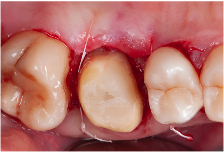 图1. 折裂线的特写照片,探诊深度为3毫米。