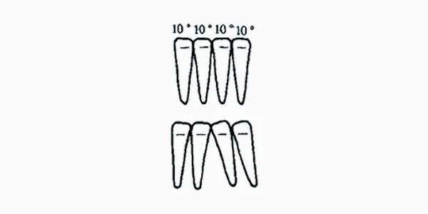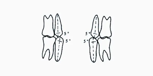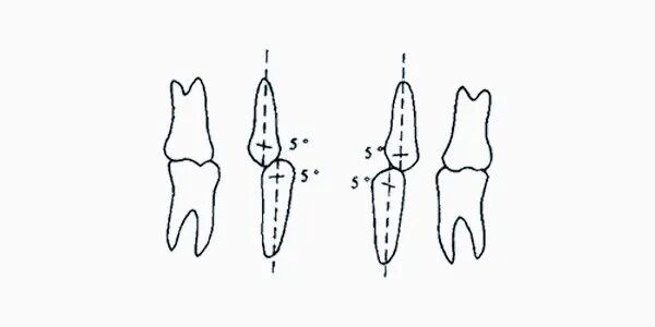 拔除第二前磨牙后,第一前磨牙上托槽的倾斜度: