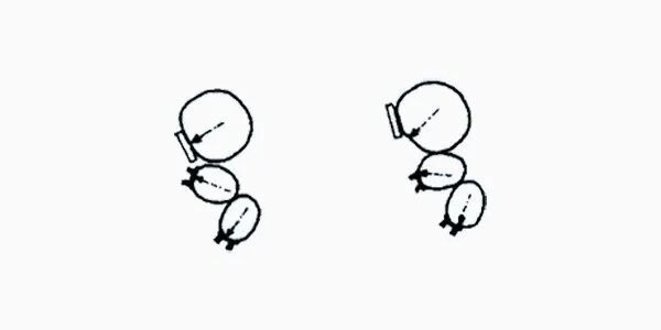 左图:托槽和颊侧管的位置正确;右图:托槽和颊侧管的位置不正确。假如像右图那样,绝对不可能将扭转的牙齿扭正。