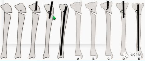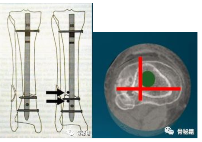 近端1/3的髓腔很大,胫骨干中部才有狭窄的管腔,可以控制髓内钉,远端也是属于较大的髓腔,比较难控制。