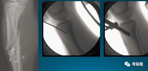 小钢板辅助复位,可以在胫骨棘前方行一个小切口,固定一个小钢板来辅助复位和维持复位,植入髓内钉后可取出也可不取。