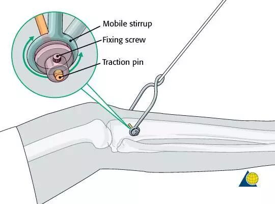 现在对股骨骨折进行牵引时,一般与 Thomas 架整合使用(图 10)。