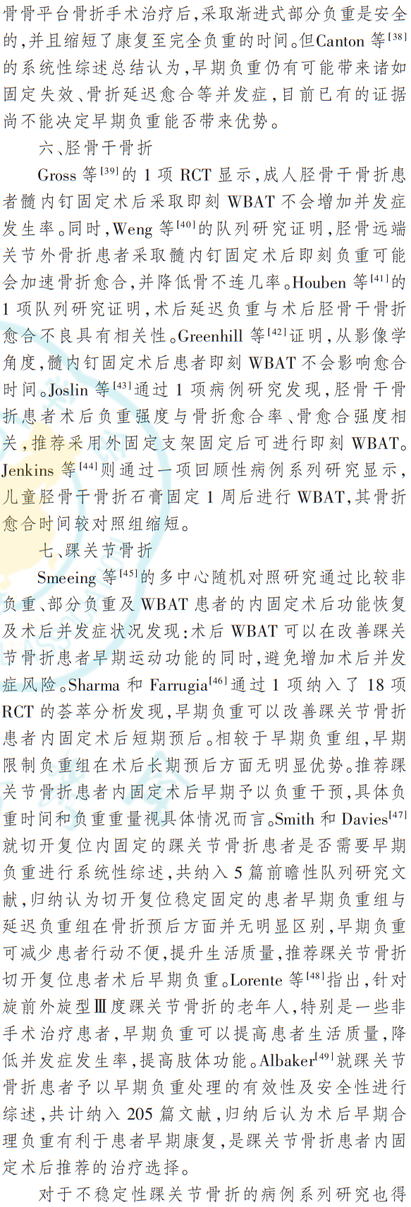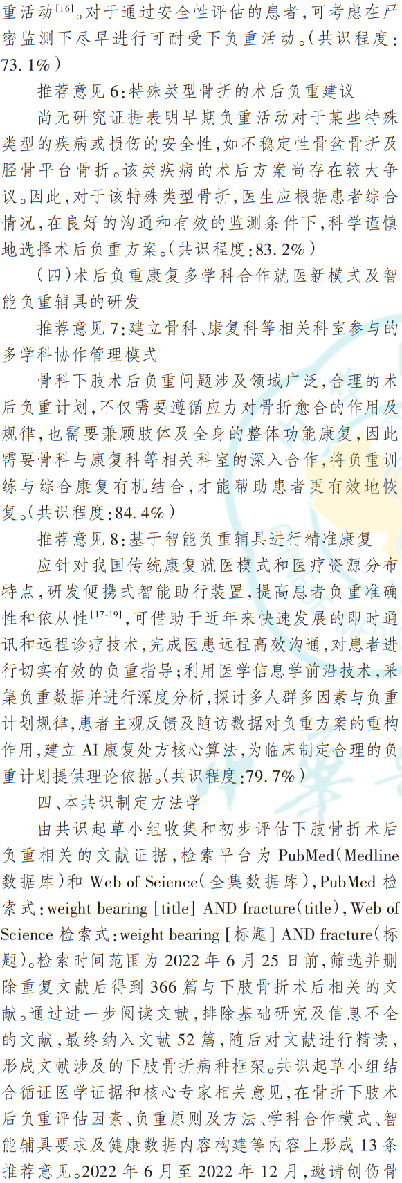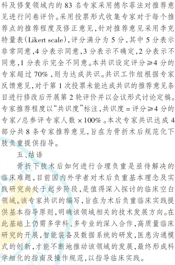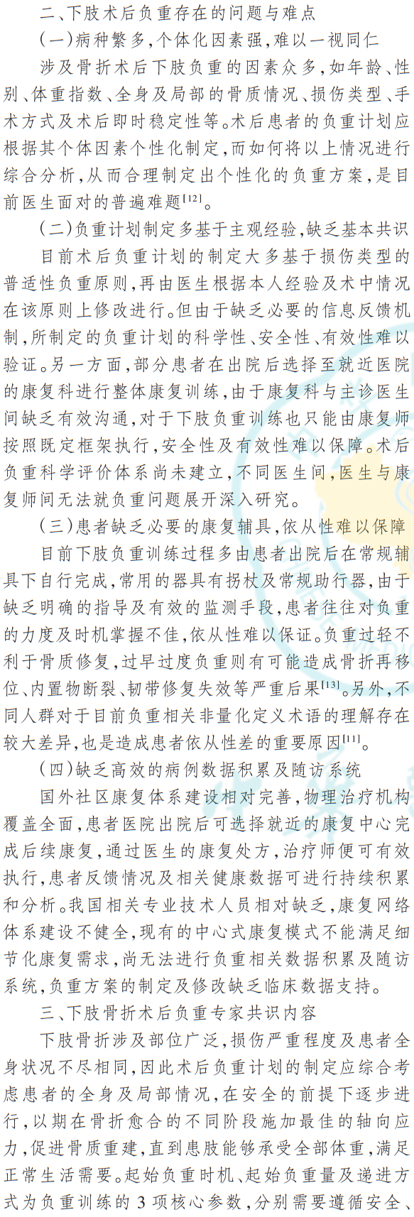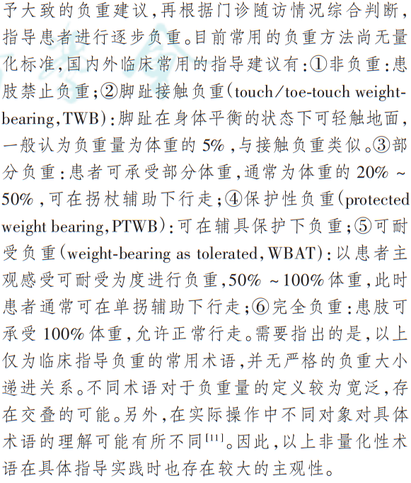 针对此临床问题,由全国创伤骨科专家代表讨论总结了临床中术后负重现有的普遍问题,形成了下肢骨折术后合理负重的基本原则及专家建议,同时列举了针对下肢各部位的负重参考方案,以期指导骨科下肢术后负重临床实践,规范临床研究及相关技术发展,为骨折下肢创伤患者提供更加优质、高效的医疗服务。