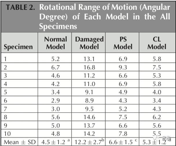扭曲成角情况:无内固定不>有内固定>内固定+横联>正常脊柱。