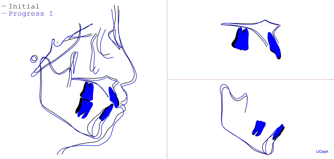 Post-TXPRE-TXPost-TXNormFMIA°47°57.555.0SNA°77.7°76.883.0SNB°70.2°73.780.0ANB°7.5°3.13.0FMA° 29.828.026PFH/AFH70.5°65.970Z Angle°50.3°64.477U1-FH113.0103.7110.0 IMPA°103.291.197.0U Lip tos’ line6.3 mm3.25.0L Lip to s’ line3.9 mm1.03.0OP-FH1212.615