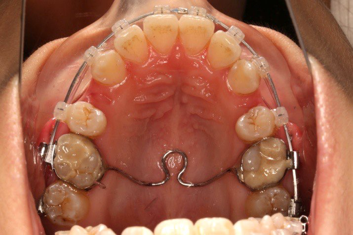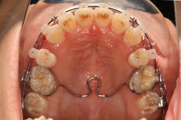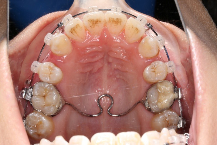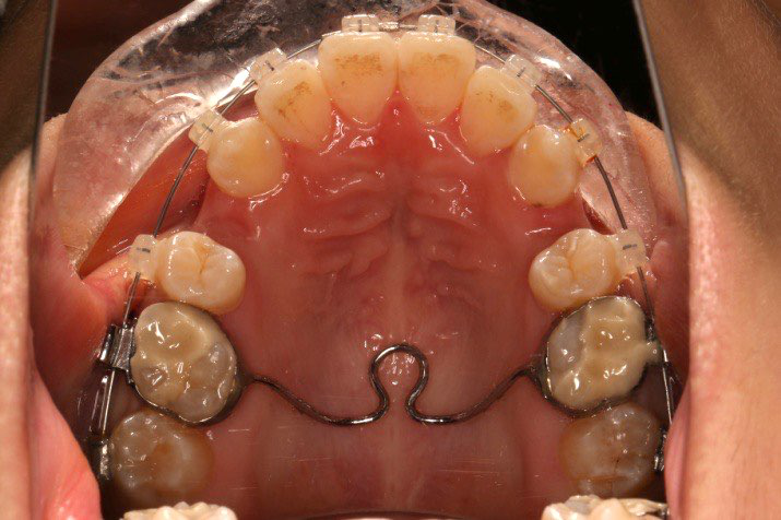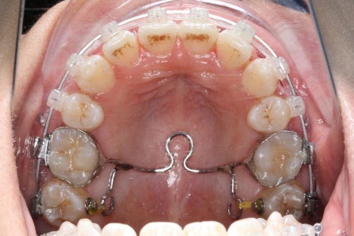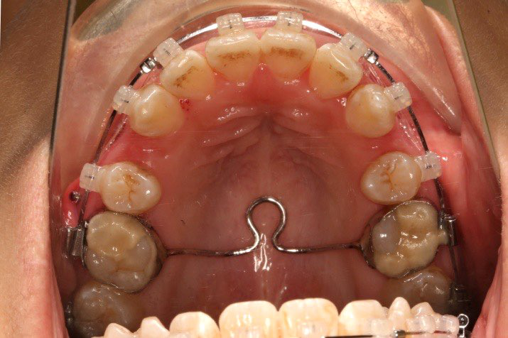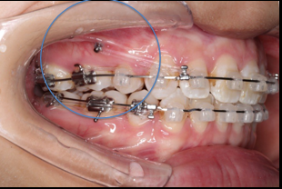 拔除14、24、34、44,上颌TPA+上颌高位支抗钉
