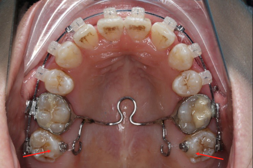 长时间使用TPA或者使用颌内支抗关间隙,容易造成第一磨牙和第二磨牙颚侧尖出现台阶,容易造成术后早接触及咬合关系不良