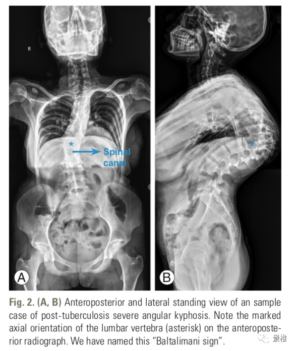 土耳其伊斯坦布尔xxx Baltalimani骨病医院的学者发现了一个脊柱严重角状后凸(≥90°)正位X线片的影像学征象,将其命名为 Baltalimani征。