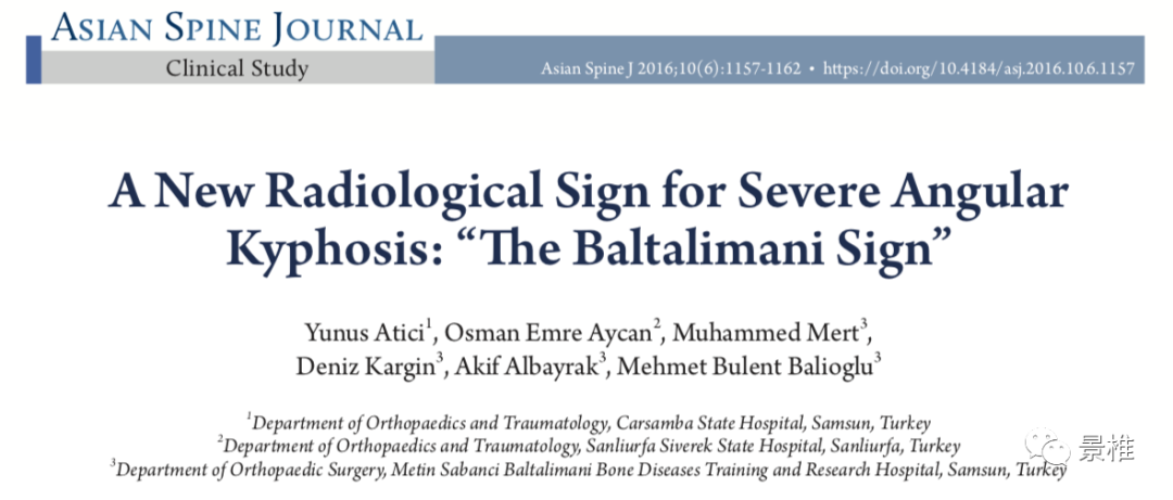 土耳其伊斯坦布尔xxx Baltalimani骨病医院的学者发现了一个脊柱严重角状后凸(≥90°)正位X线片的影像学征象,将其命名为 Baltalimani征