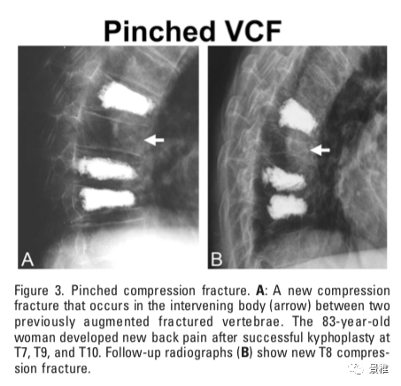 Pinch骨折:pinch,夹、捏。上下伤椎行PVP术后,中间夹心的正常椎体出现新发骨折。