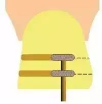 选择合适的金刚砂深度引导车针沿近中至远中方向切割牙体唇面,可见形成一定深度的水平沟槽,其间为突起的釉质带。