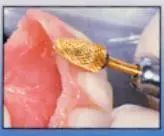 ※用锋利的剪刀或手术刀除掉多余部分。用大的橡胶头或修整石磨光唇侧和颊侧上方的物质。
