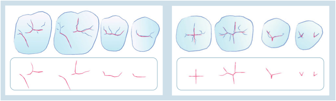 众所周知,准确分析咬合面解剖结构是后牙直接复合修复的关键第一步。在预备洞形前,有必要“阅读”并记住牙齿剩余部分的解剖细节。同样重要的是,在洞形预备完成但尚未填充时,检查牙齿解剖结构,因为在洞形预备和填充过程中,一些解剖特征通常会丢失。