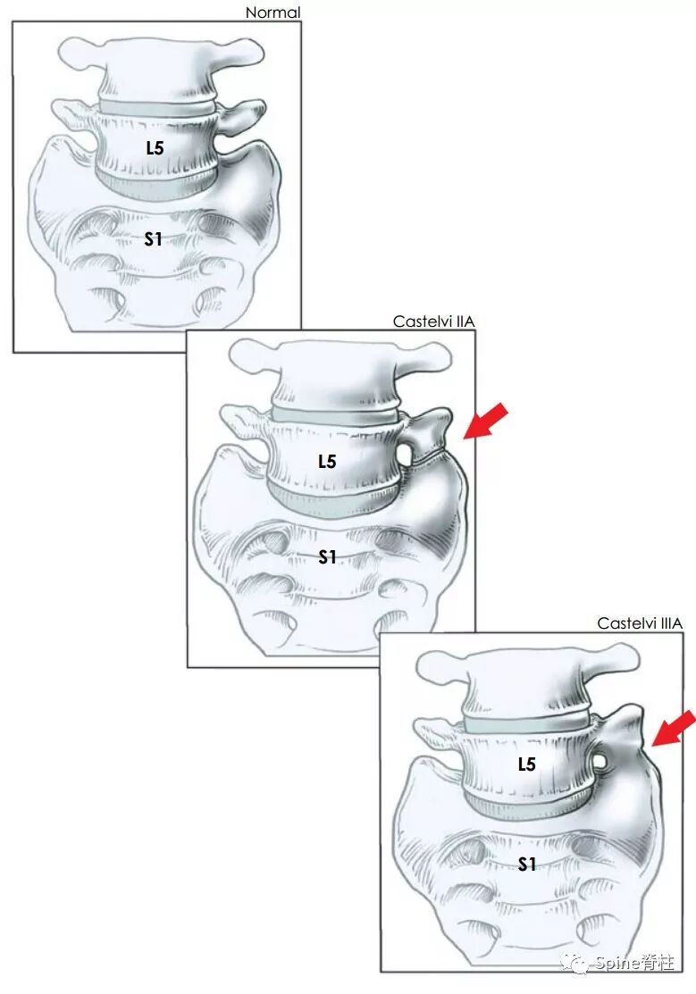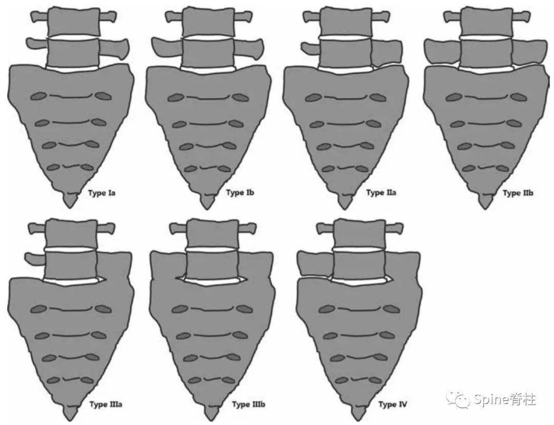 - Ⅰ型包括单侧或双侧腰椎-骶椎化的椎体横突发育不良,测量至少19mm的宽度(颅尾尺寸)