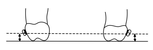除了上颌侧切牙上的托槽应向切缘降0.5mm外,其余牙齿上的托槽槽沟(水平槽)的高度必须与第一磨牙上颊侧管的高度相同。这样在矫治结束后,上颌侧切牙将低于(牙合)面0.5mm,更符合美观要求。