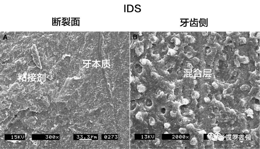 3、当树脂 -- 牙本质界面被一圈已经酸蚀粘接的牙釉质包围时,全酸蚀粘接剂与牙本质粘接力更耐久。