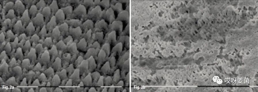 5、使用全酸蚀粘接系统时,避免延长对牙本质的酸蚀时间。过度酸蚀会使牙本质脱矿超过所需的深度,使树脂底漆和粘接剂的渗透更困难。未被树脂包裹的胶原蛋白提供一个粘接退化的潜在位置。